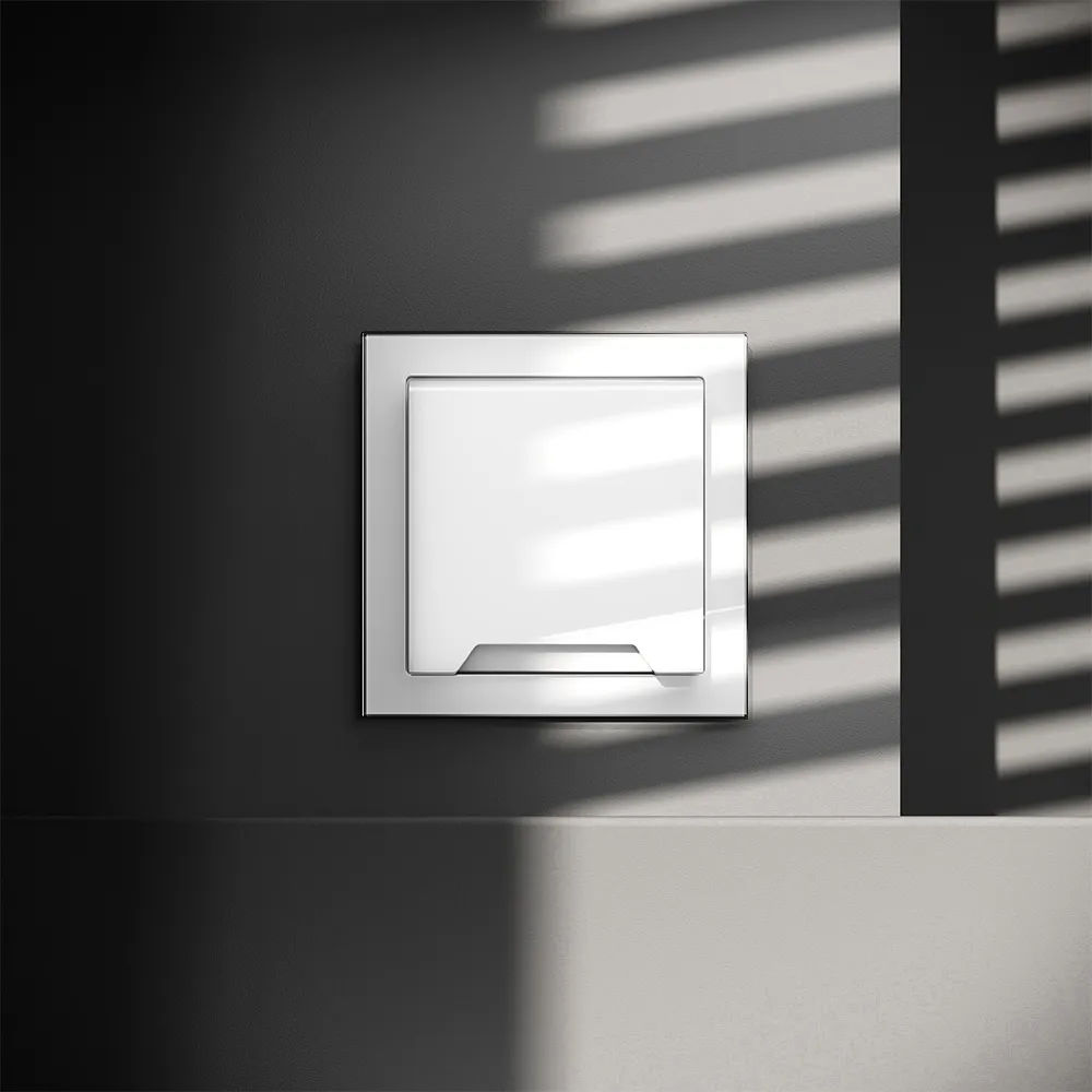 • Габариты: ширина — 92 мм, высота — 73,8 мм, монтажная глубина — 31,5 мм (совместима со стандартными подрозетниками)
