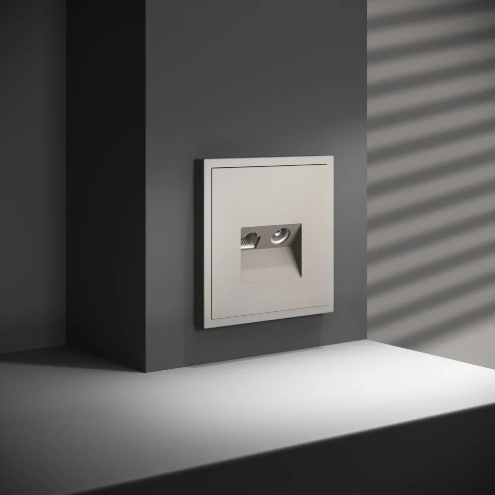 Забудьте о спутанных проводах за телевизором. Комбинированная розетка VOLTUM S70 TV+RJ45 объединяет антенну и гигабитный интернет в одной элегантной точке подключения. Чистый сигнал. Чистая стена. Полный комфорт.
