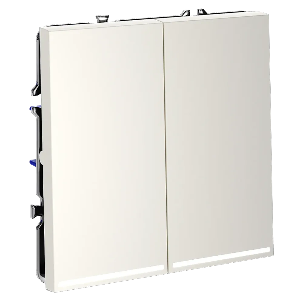 Двухклавишный выключатель VOLTUM S70 с подсветкой в цвете «хлопок» — это идеальное сочетание функциональности, современного дизайна и удобства использования в темное время суток. Благодаря встроенной светодиодной подсветке, вы легко найдёте выключатель даже при полной темноте, не нарушая атмосферы уюта в спальне, коридоре или детской.