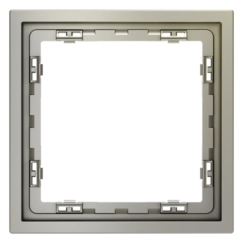 Обеспечивает быстрое и легкое соединение механизма с рамкой. Восемь фиксаторов по периметру нивелируют неровности стены и надежно удерживают конструкцию.