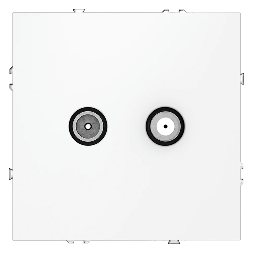 Розетка выполнена по оконечной схеме, что обеспечивает корректную передачу сигнала в системах коллективного телевидения и предотвращает помехи и отражения. Благодаря двум разъёмам в одном корпусе вы можете подключить как эфирное/кабельное ТВ, так и спутниковый ресивер — всё в одном компактном устройстве.