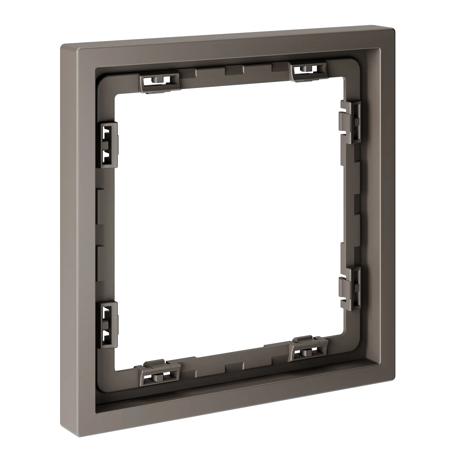 Обеспечивает быстрое и легкое соединение механизма с рамкой. Восемь фиксаторов по периметру нивелируют неровности стены и надежно удерживают конструкцию.