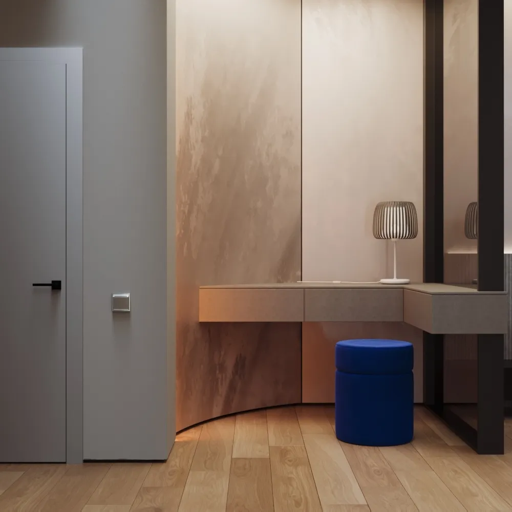 • Цвет «шелк» — нежное сияние — светло-серый оттенок с едва уловимым перламутровым подтоном добавляет номеру ощущение изысканности. Покрытие Soft touch создаёт бархатистую матовую поверхность, которая не собирает отпечатков и мягко рассеивает свет. Идеален для интерьеров в стиле минимализм, неоклассика и бутик-отели, где важна тонкая эстетика.