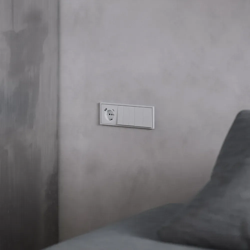 В отличие от обычного выключателя, перекрёстный переключатель используется в связке с двумя проходными переключателями, позволяя включать и выключать свет из любого количества мест. Двухклавишная версия даёт возможность управлять двумя световыми зонами одновременно — например, основным освещением и декоративной подсветкой — сохраняя при этом полную свободу перемещения по помещению.